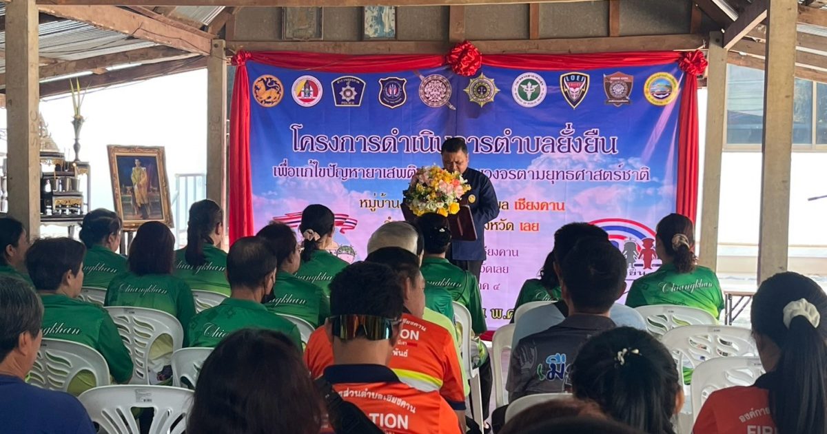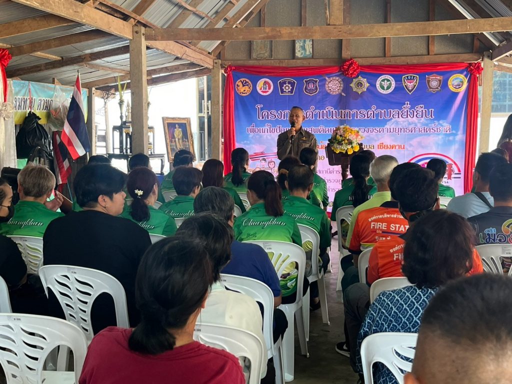 พ.ต.ต.แสน ยกให้ สวป.(ชส.)สภ.เชียงคานพร้อมด้วยชุดปฏิบัติการชุมชนยั่งยืน ฯ สภ.เชียงคาน สายตรวจตำบล , ผู้ใหญ่บ้านและคณะกรรมการหมู่บ้าน ร่วมกันดำเนินการเปิดโครงการดำเนินงานตำบลยั่งยืน เพื่อแก้ไขปัญหายาเสพติดแบบครบวงจร ดังนี้