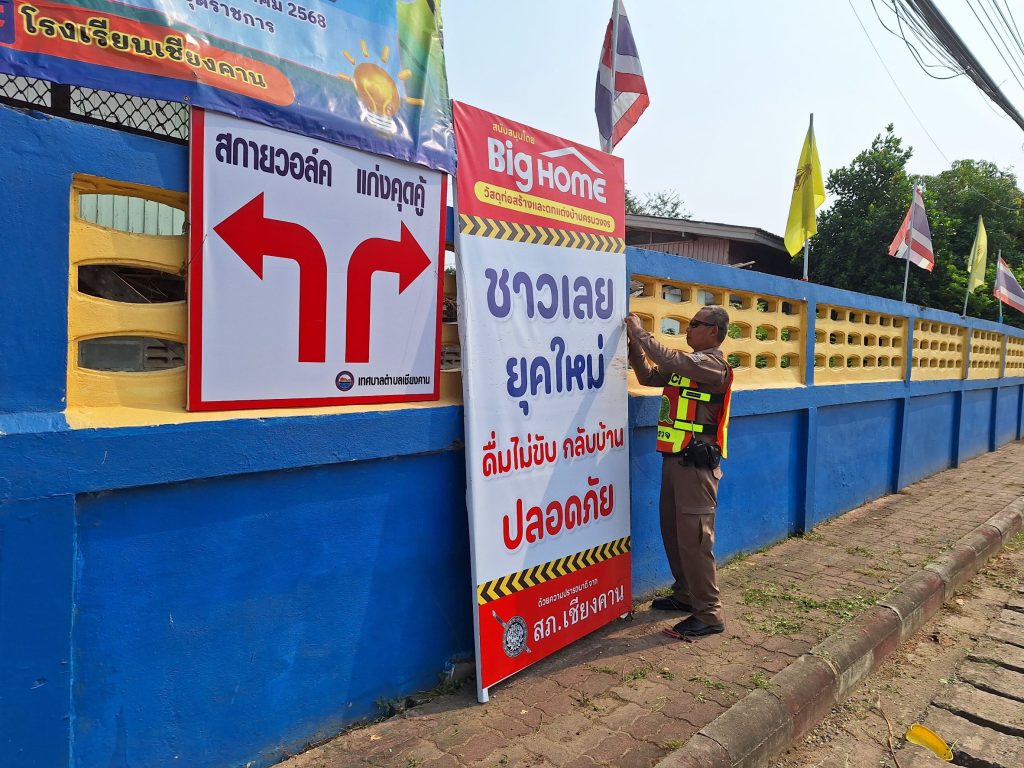 ได้มอบหมายให้ ชุดสายตรวจจราจร ติดป้ายประชาสัมพันธ์รณรงค์การขับขี่ปลอดภัย ลดอุบัติเหตุในช่วงเทศกาลสงกรานต์ ปี 2568