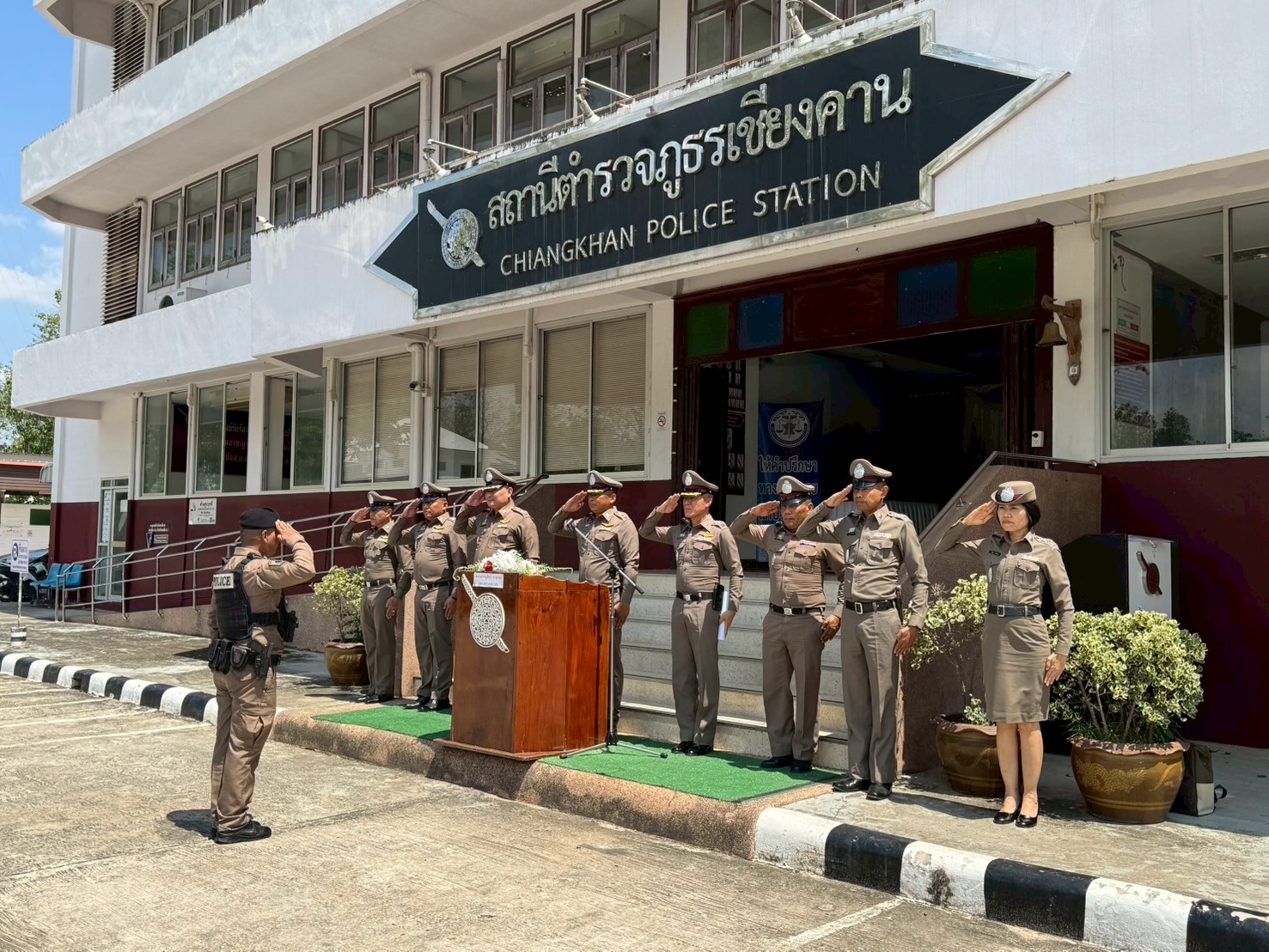 โดยมี พ.ต.อ.สันติ ชูเชิด ผกก.สภ.เชียงคาน จว.เลย พร้อมข้าราชการตำรวจ สภ.เชียงคาน ให้การต้อนรับ และรับการตรวจราชการ